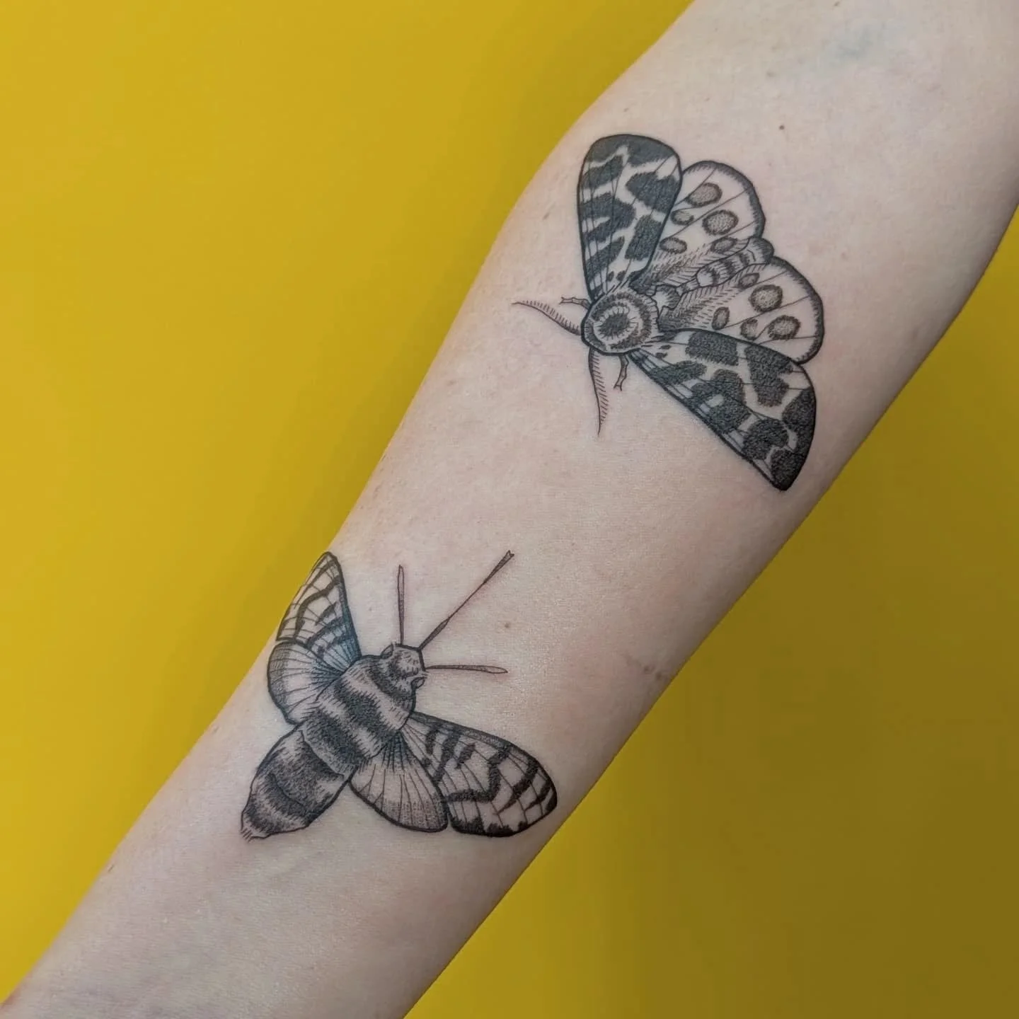 View fullsize Two lesser tattooed moths for Lucy! The hummingbird hawk moth and the garden tiger moth 💛