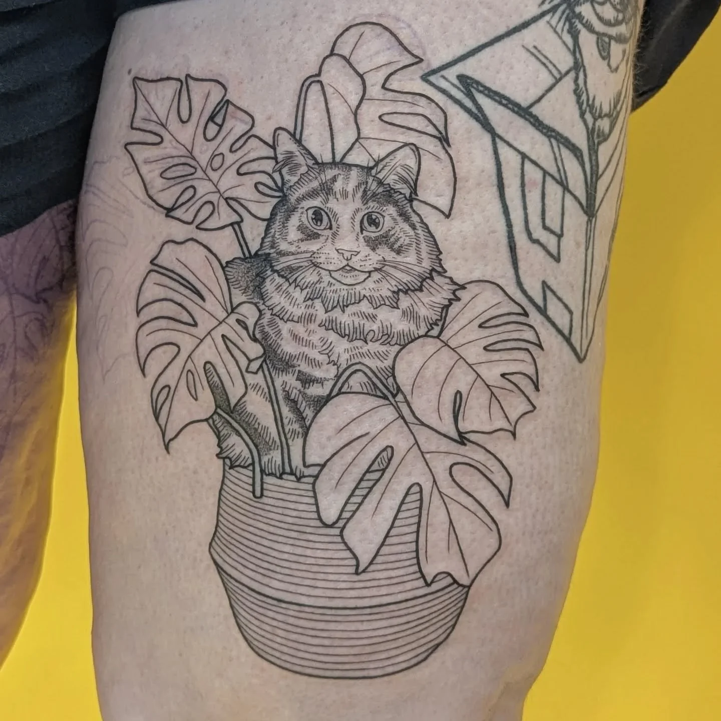 View fullsize A fun challenge from @kitty_pressland_tattoo ; to cover up an old practice tattoo from back in her apprentice days!