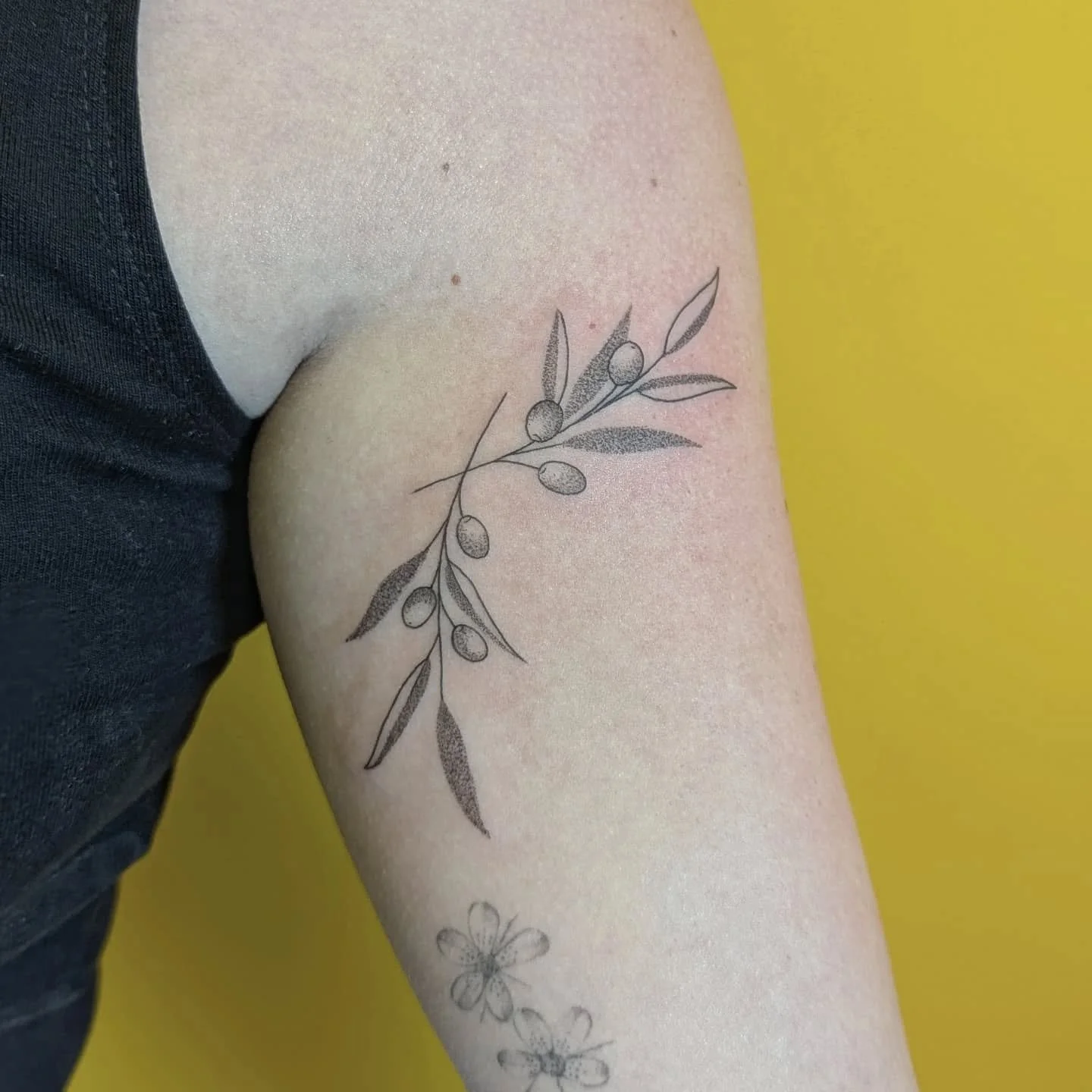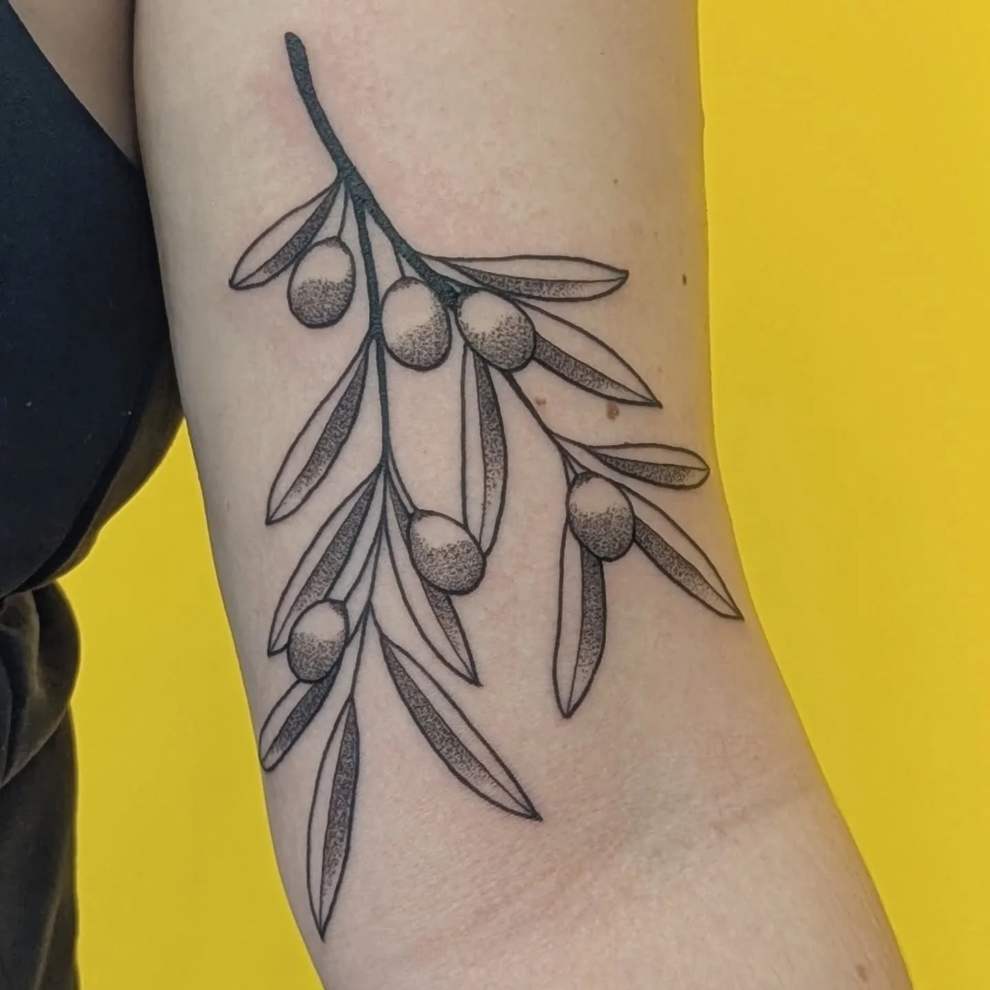 View fullsize I really enjoyed tattooing these dotty olive branches for Abbie!