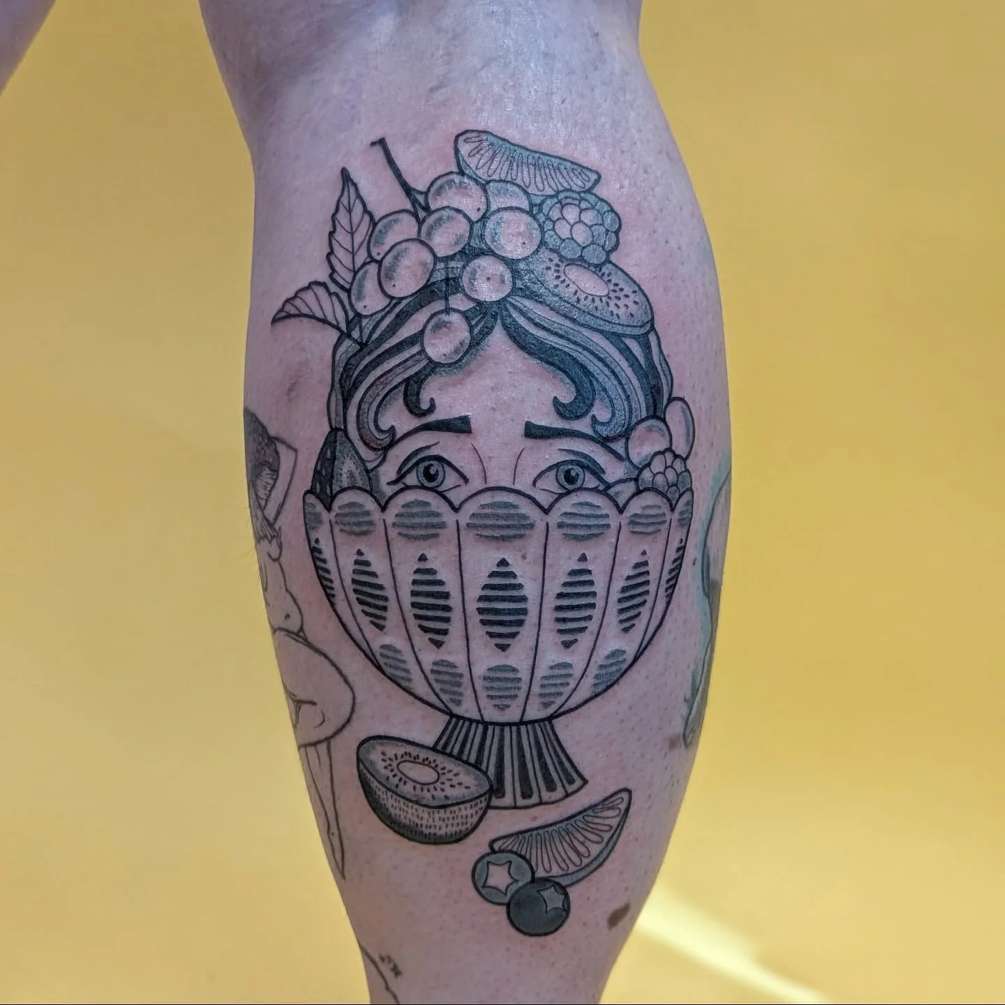 I had lots of fun drawing & tattooing this piece, I've included a photo of the initial sketch so you can see the starting point!