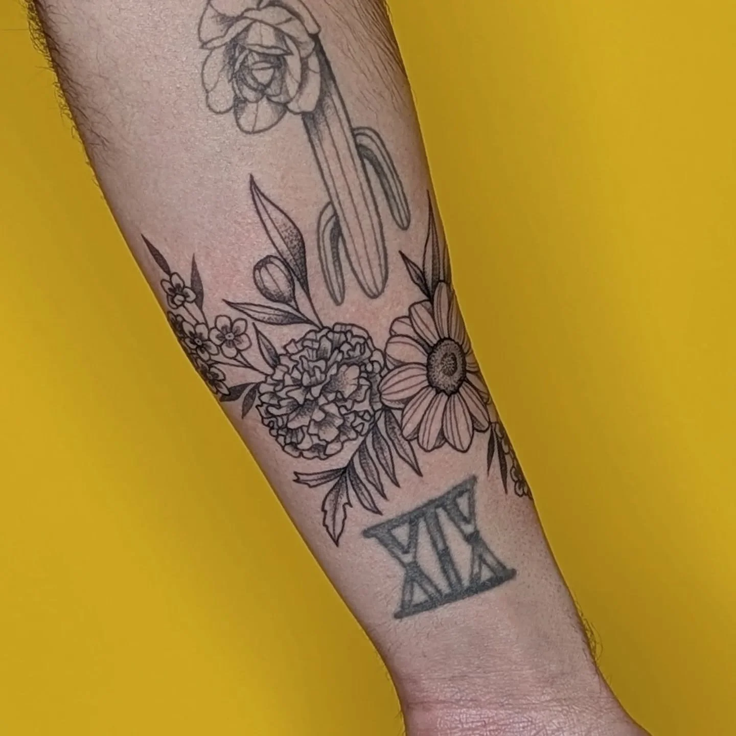 Here's a wax flower from my flash which we extended to fill the space between Eilidh's other tattoos!
