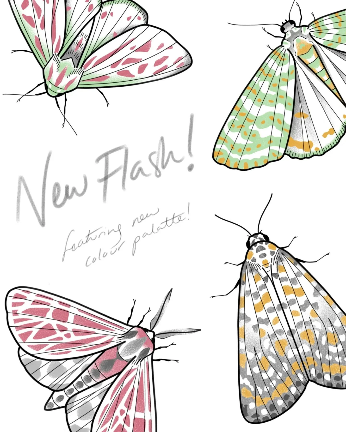 I'm now taking bookings for March-May - custom or flash, lines, greys, dots and now some colour!